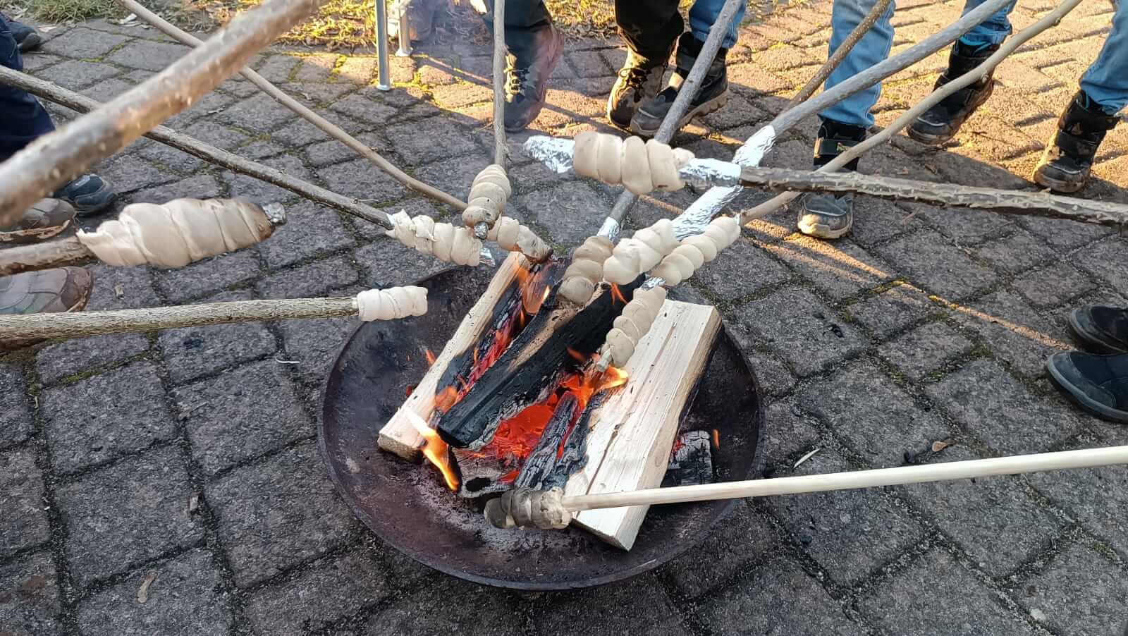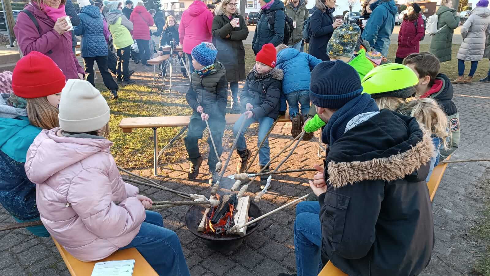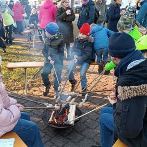 Zum gemeinschaftlichen Abschluss kamen wir wieder auf dem Dorfplatz zusammen, zum Lagerfeuer mit Stockbrot, Glühwein, Früchtepunsch und leckerem Raclettebrot. Dort hatten dann auch wieder die zahlreich anwesenden Kinder jeglichen Alters so richtig ihren Spaß - und ihre Eltern hoffentlich nicht weniger.