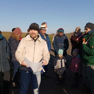 Vom Dorfplatz aus ging es vorbei an der ADS zur ersten für alle Teilnehmerinnen und Teilnehmer äußerst interessanten Zwischenstation bei Hobbyschäferin Corinna Buchmann und ihrer Schafherde, die dort derzeit ihr vorübergehendes Zuhause haben.