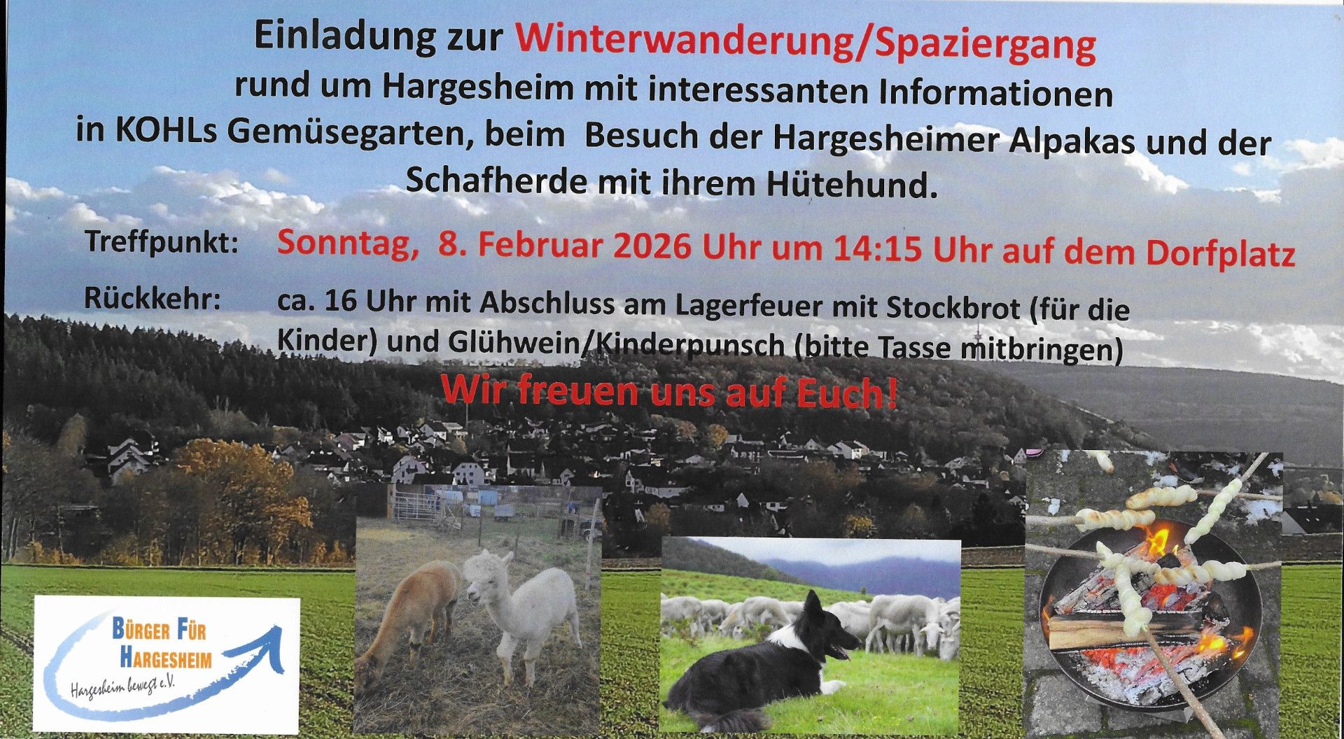 Einladung zur Winterwanderung/Sparziergang rund um Hargesheim